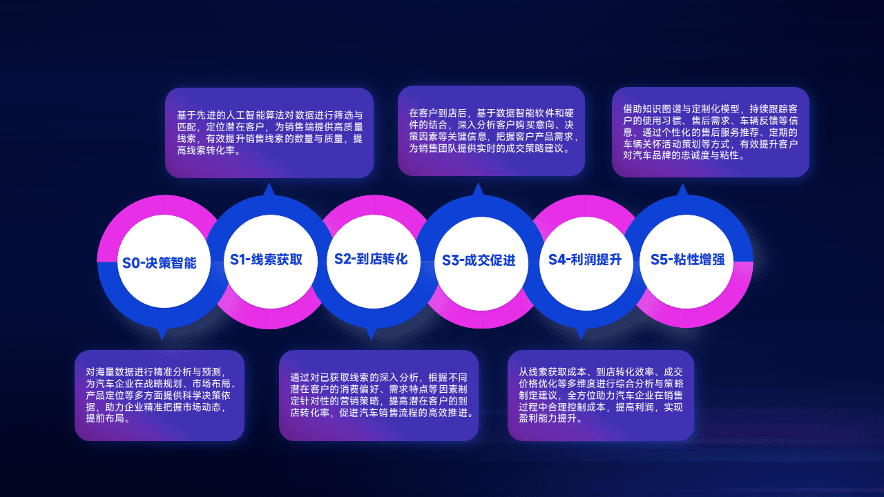 通过拓宽潜在客户来源、、、优化线索分配并提高到店转化率,,以增强销售效率。。。同时,,,,利用线索数据不断优化分析模型,,,,有效提升转化率,,,扩大营销影响力。。